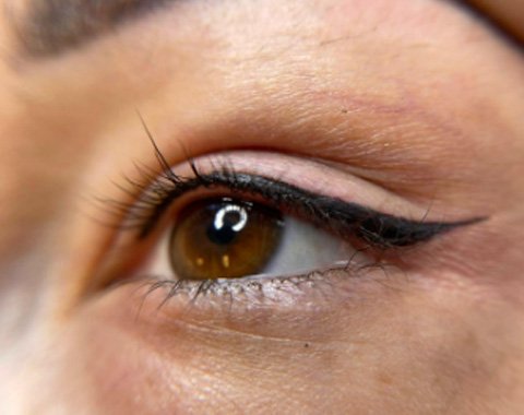 Delineado permanente en la línea superior de las pestañas, con un trazo definido y elegante. Se recomienda para quienes desean una apariencia sofisticada y un efecto de ojos más expresivos.
